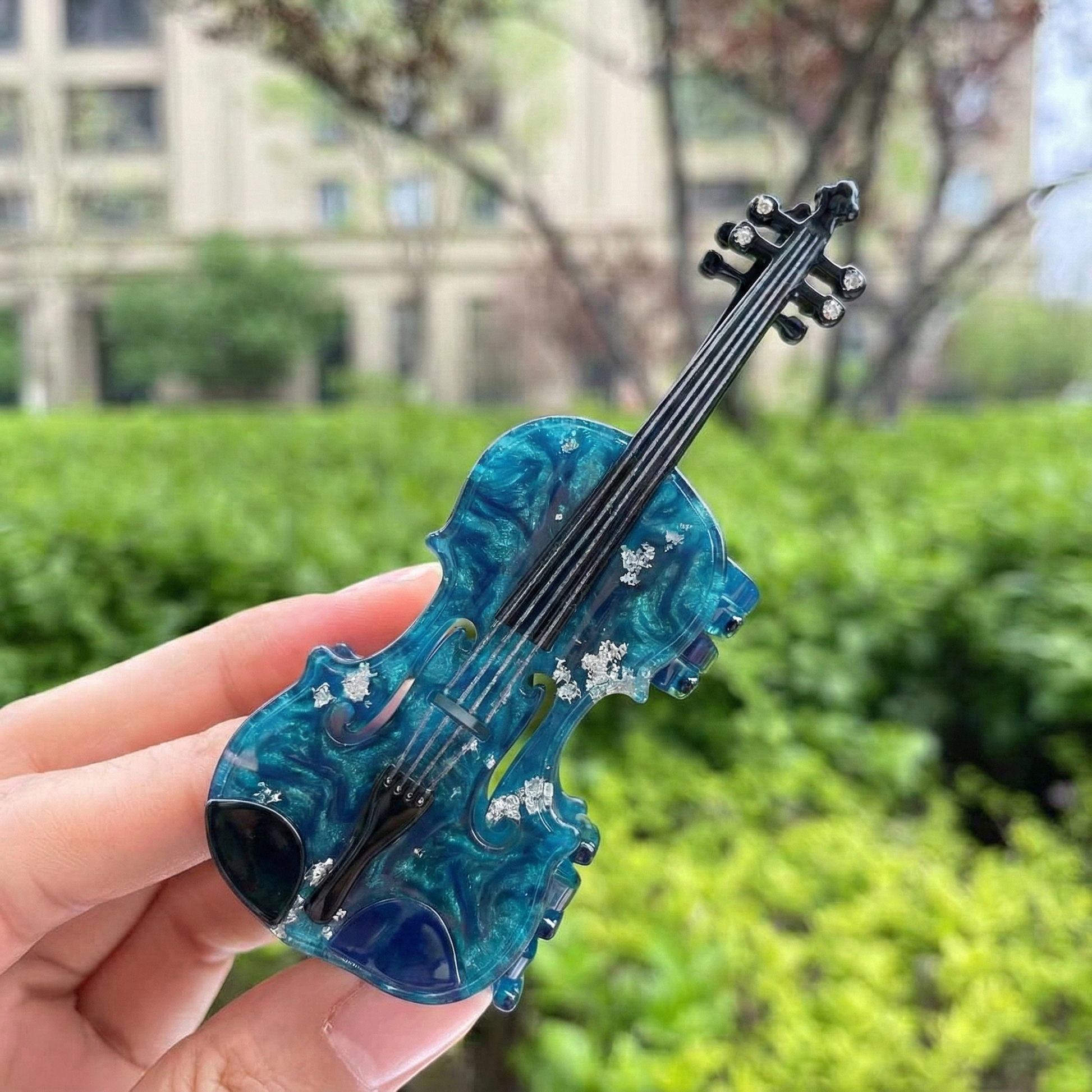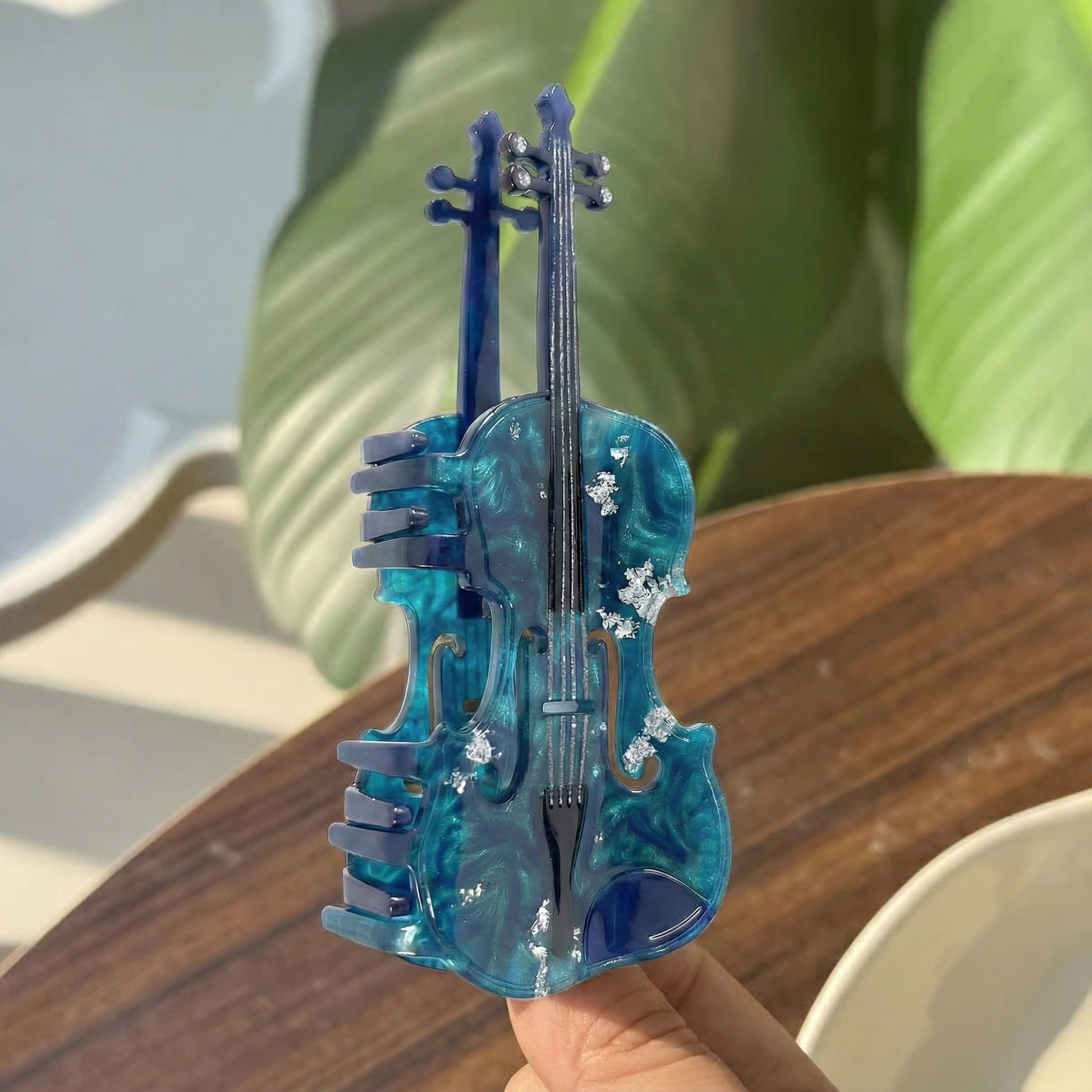 Mükemmel uyumun simgesi: İkili keman tasarımı. Okyanus mavisi mermer dokusu ve içindeki gümüş pırıltılar, saçınızda soğuk ve modern bir esinti yaratır. Esnek ve kırılmaya dirençli yapısıyla gün boyu saçınızı güvenle tutar.