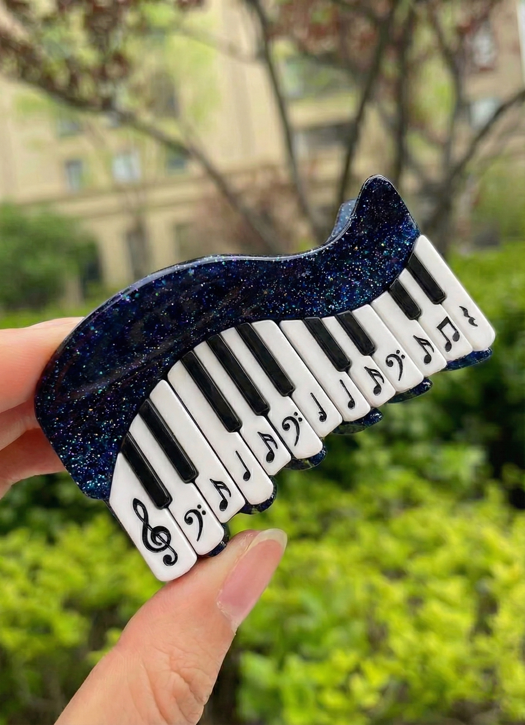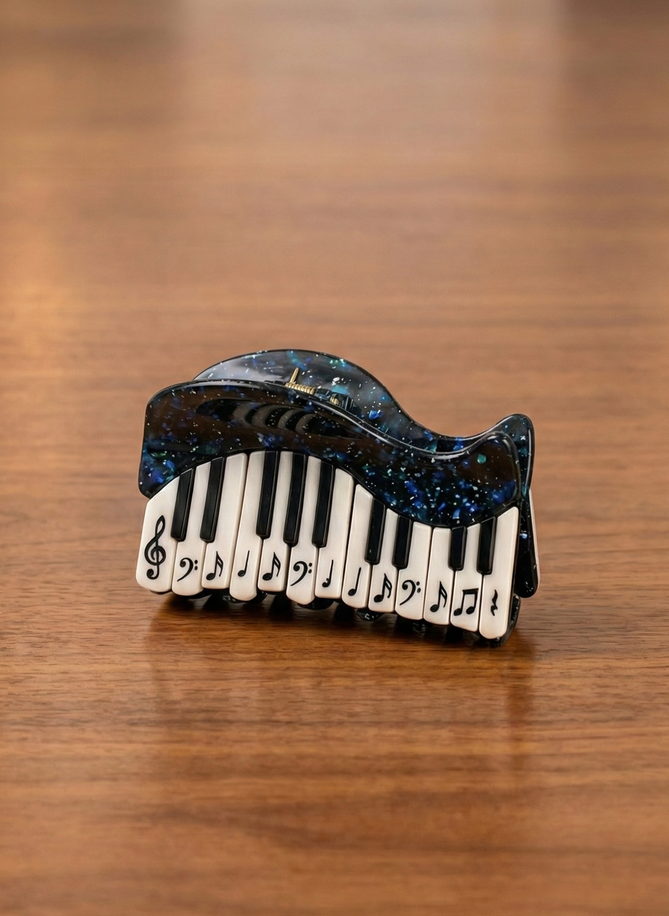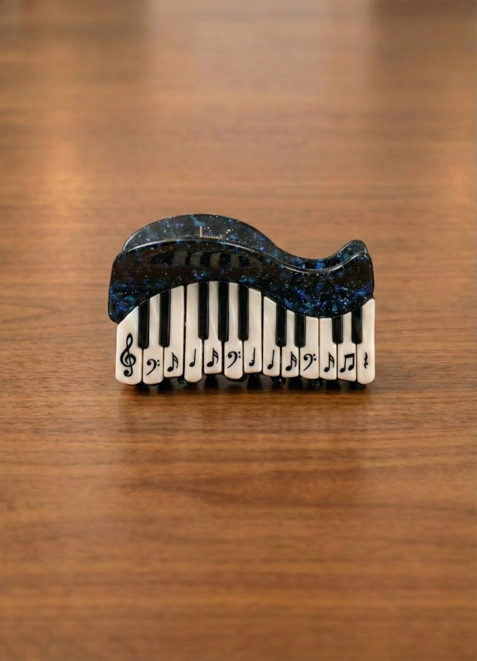 Yıldızlı bir gecede piyano resitali... Üst kısmındaki koyu lacivert galaxy ışıltıları ve alt kısımdaki nota detaylı tuşlar, müziği hayatının merkezine koyanlar için tasarlandı. Dayanıklı malzemesiyle saçınızda kayma yapmaz.
